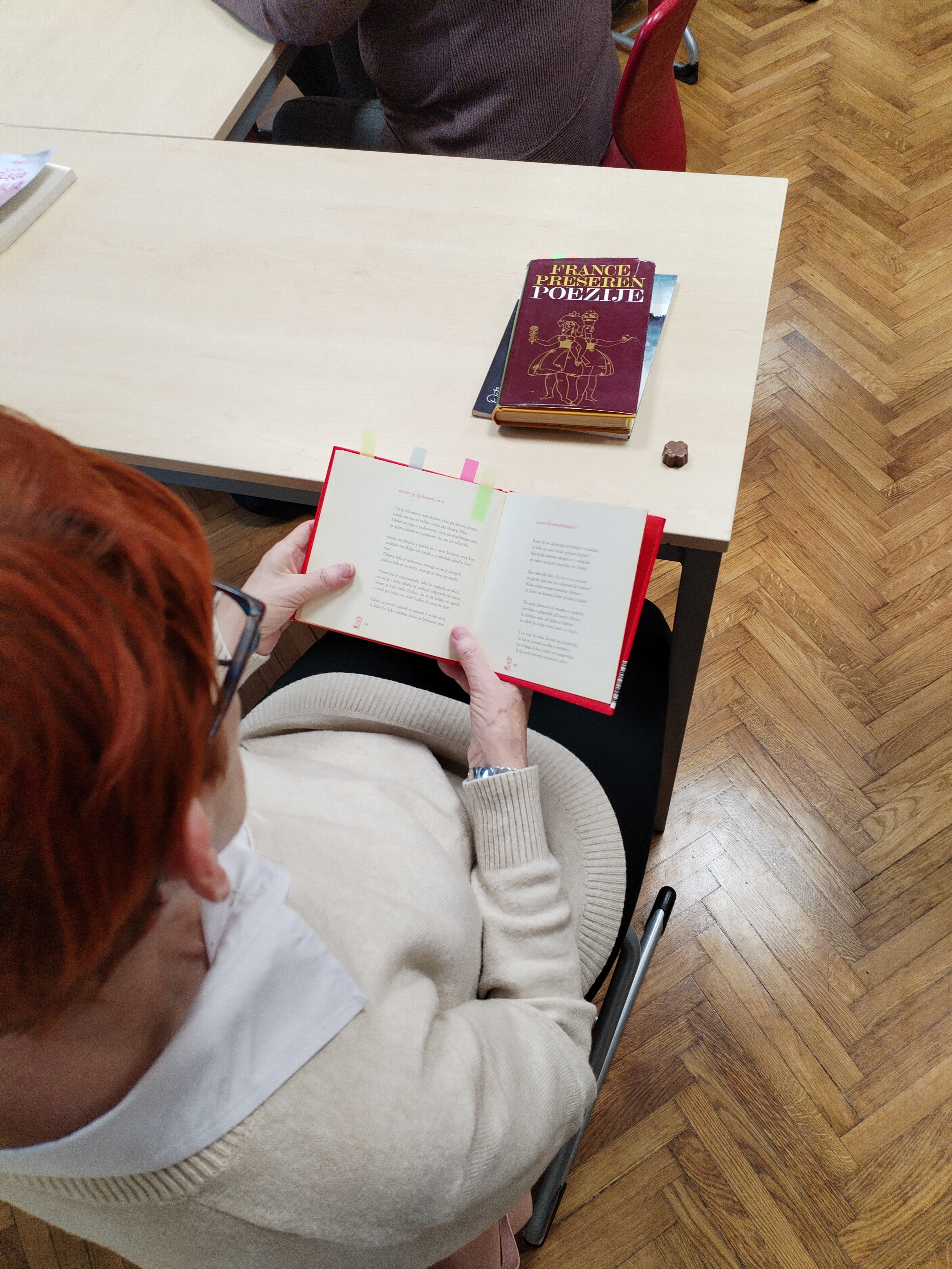Skupaj smo se spomnili Srečka Kosovela in Zofke Kveder, ki jima je letos Vlada RS namenila leto na nacionalni ravni. Spomnili smo se tudi Dragotina Ketteja in Ivana Cankarja ob 150. obletnici smrti letos. Naši knjižničarki sta gradivo za skupno petminutno branje prinesli s seboj in knjigam dodali še raznolike, kakovostne revije in časopise.