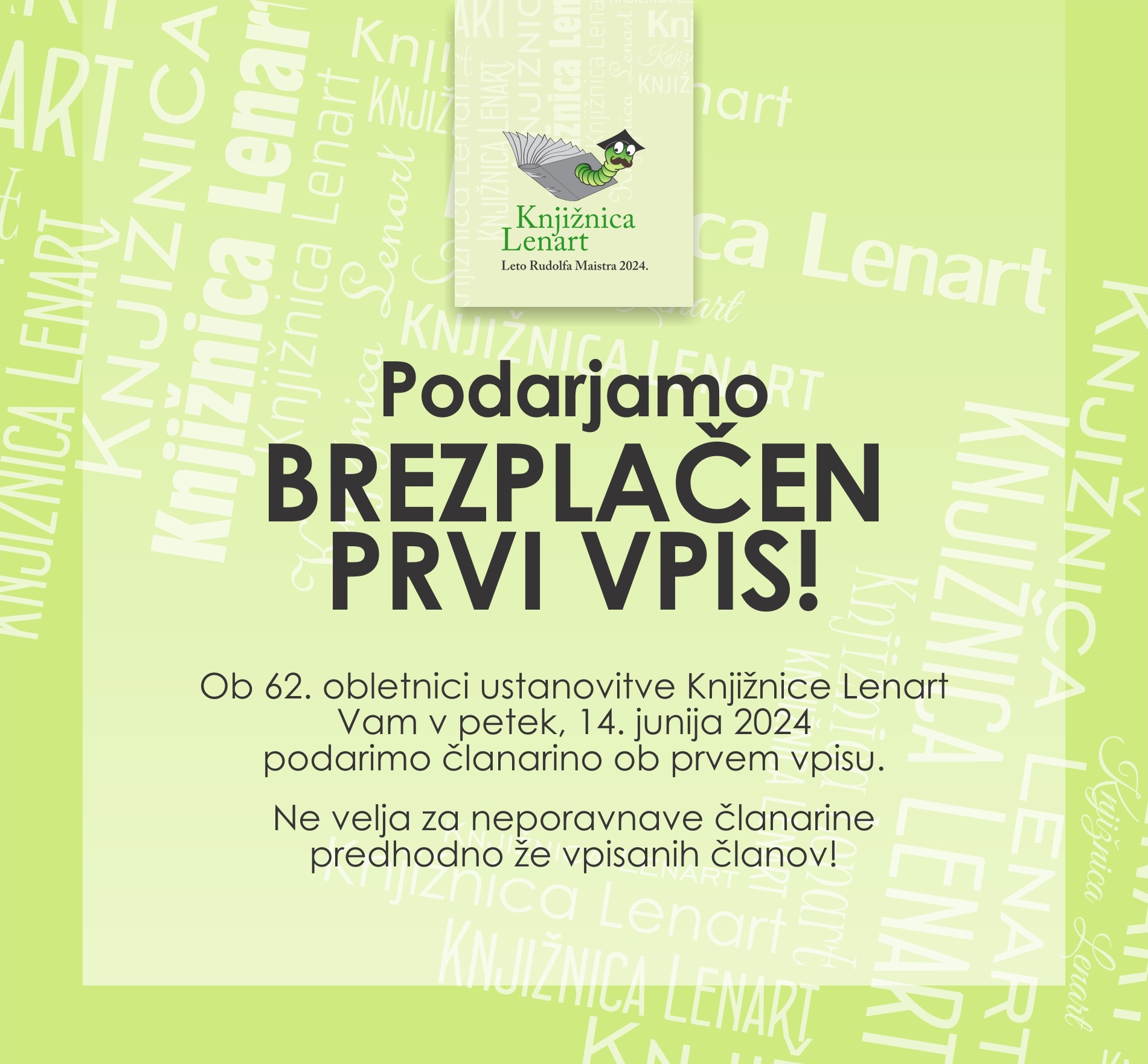 Ob 62. obletnici ustanovitve Knjižnice Lenart Vam podarimo članarino ob prvem vpisu.
