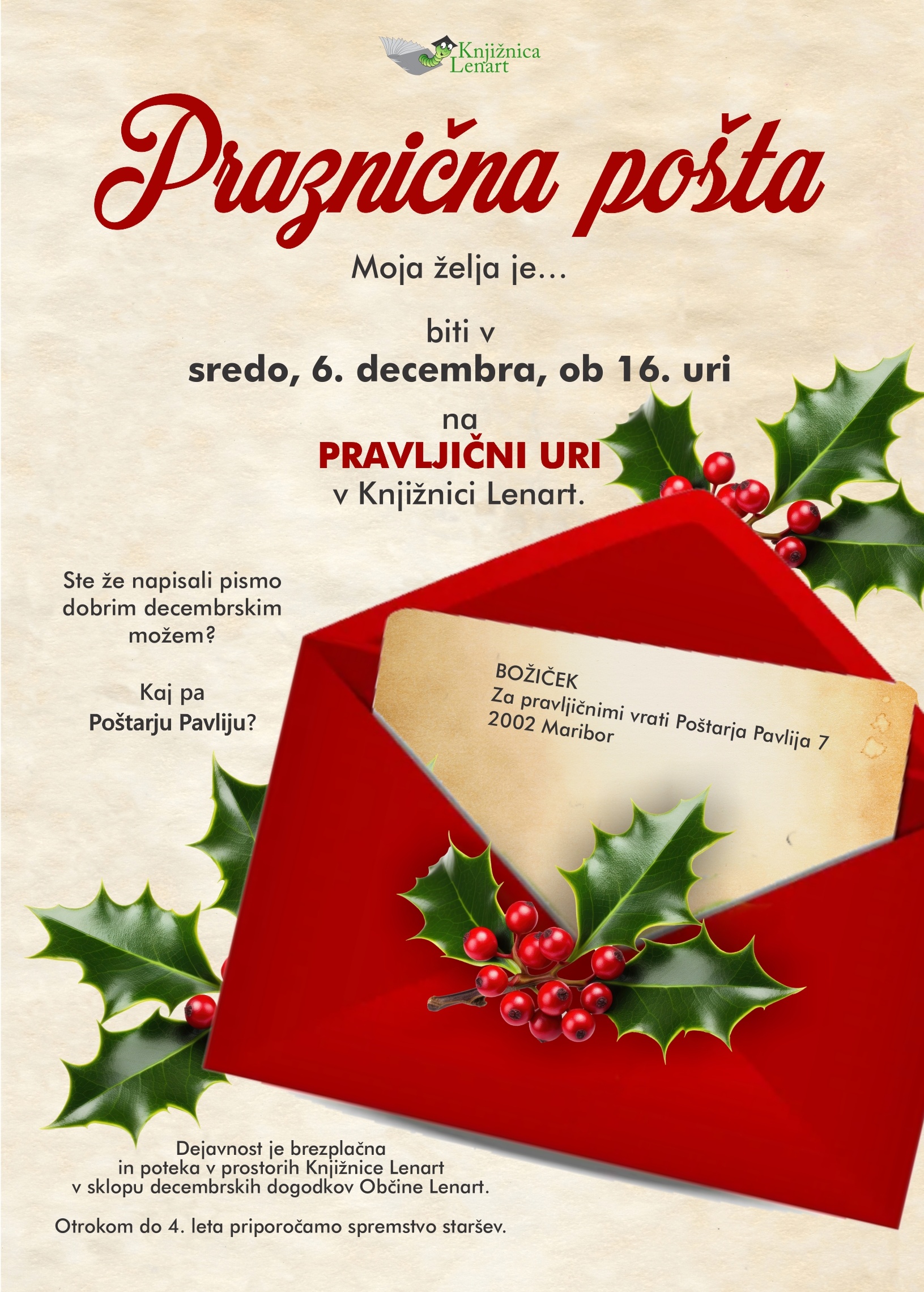Nič še niste zamudili, pridružite se nam v sredo, 6. decembra, ob 16. uri v Knjižnici Lenart.