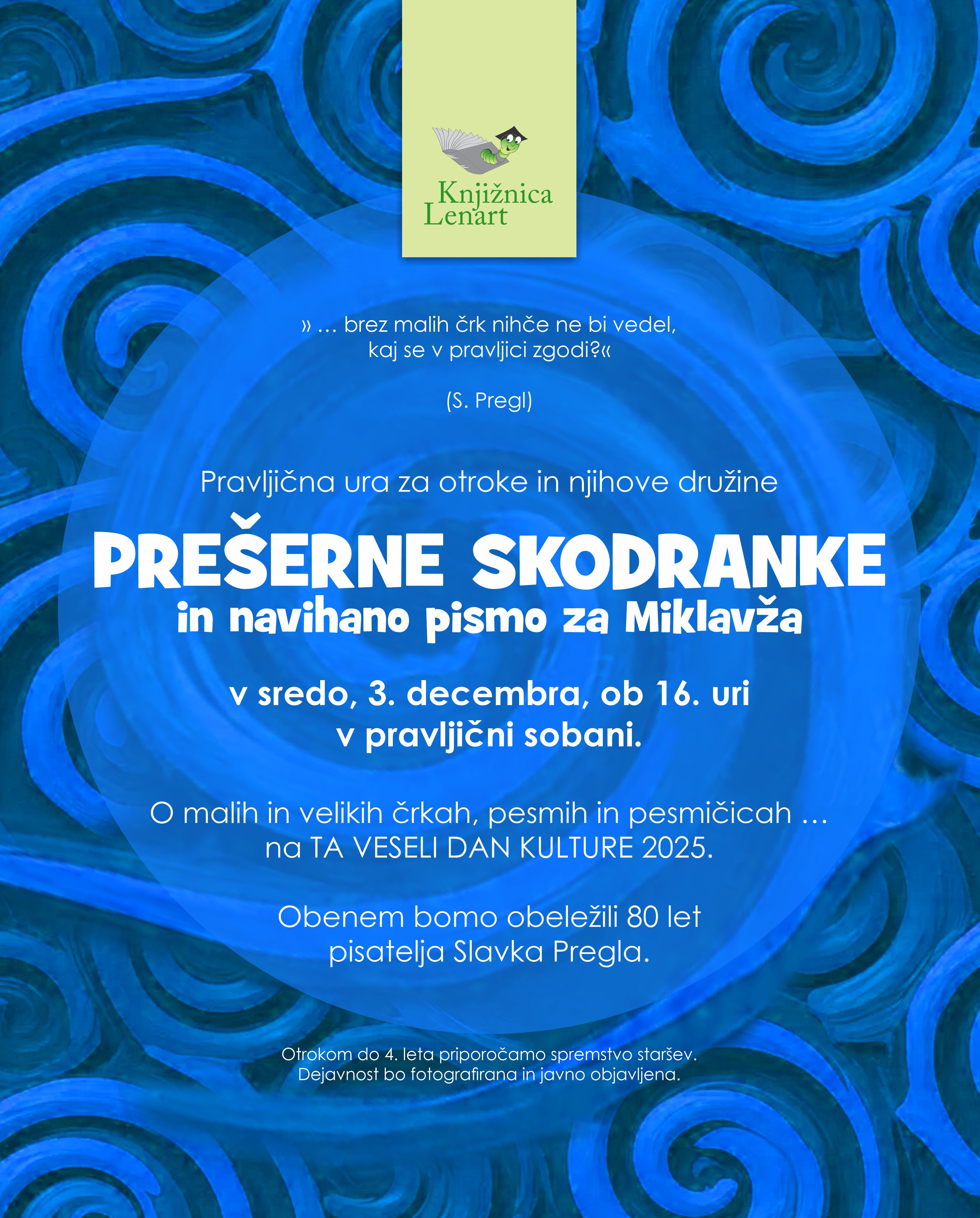 Otrokom do 4. leta priporočamo spremstvo staršev. Dejavnost bo fotografirana in javno objavljena.