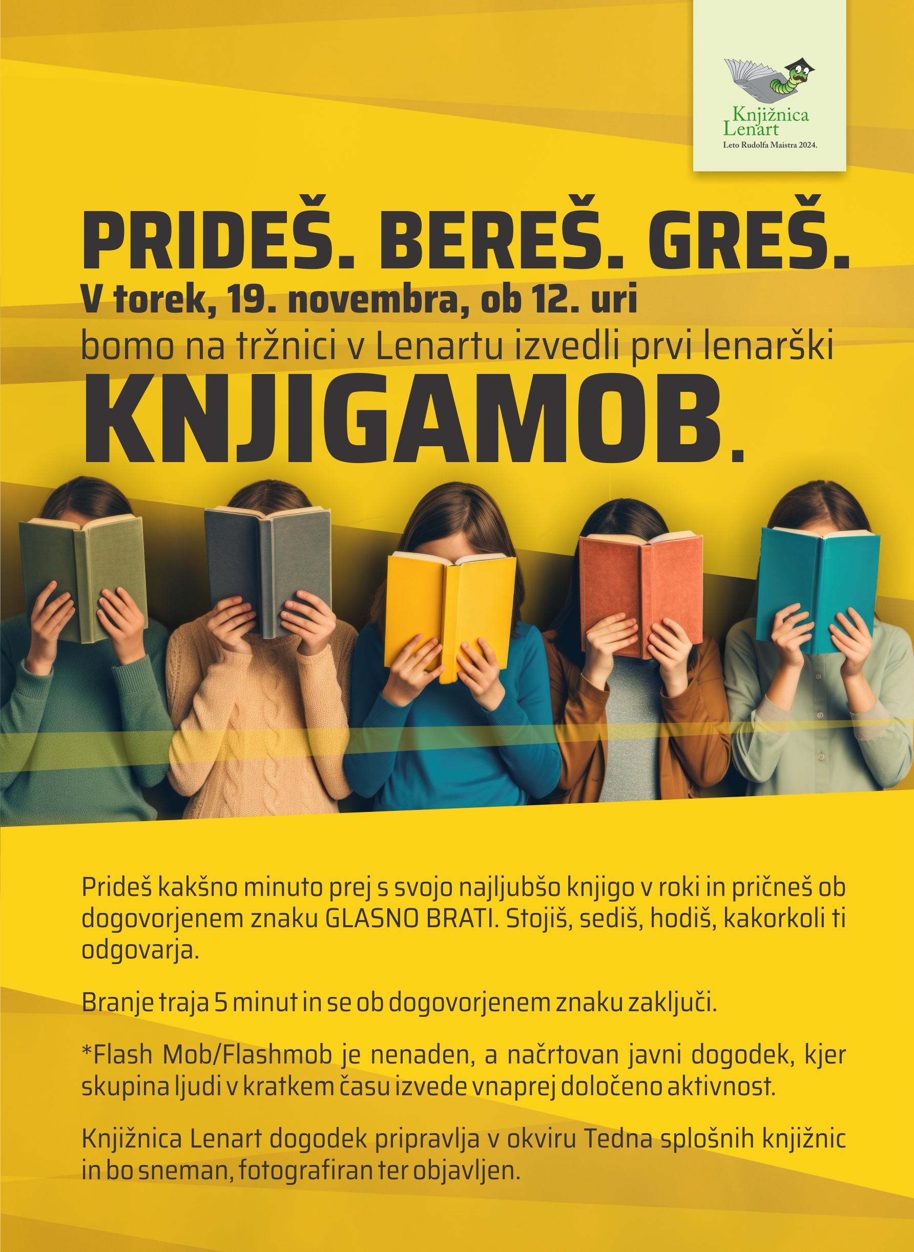 Čez natanko 5 minut bo branje končano in z njim tudi prvi LENARŠKI KNJIGAMOB.
