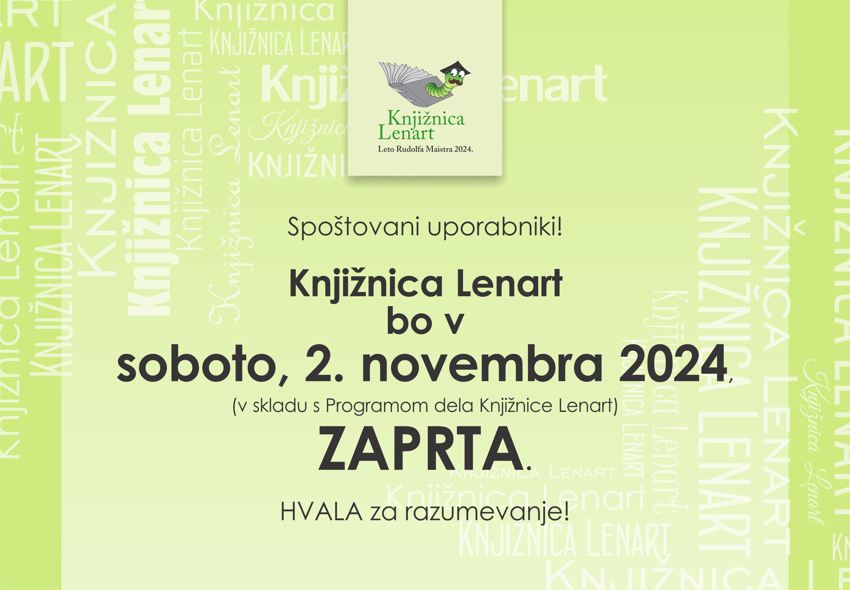OBVEŠČAMO vas, da bo Knjižnica Lenart v soboto, 2. novembra, ZAPRTA!