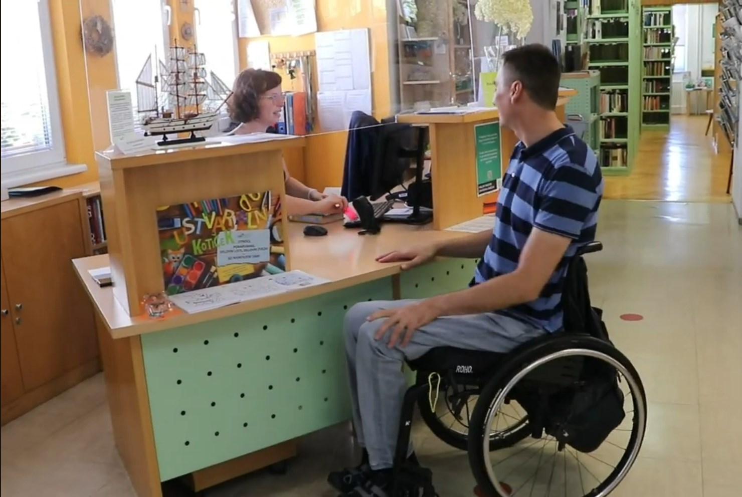 Skozi video, ki je na Igorjevo pobudo nastal v naših prostorih in z našo pomočjo, je podrobneje predstavil premagovanje arhitektonskih ovir in pomoč gibalno ovirani osebi na primeru splošne knjižnice.