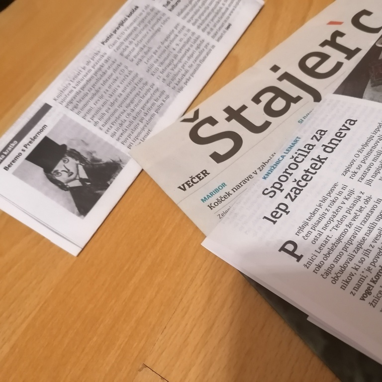Svoje delo opravljamo z veseljem, usmerjeno k uporabnikom ter z dobrimi nameni. Posebej veseli pa smo, če je naš trud opažen. O naših dejavnosti v Tednu pisanja z roko je bil prispevek objavljen v četrtkovi prilogi Večera, v Štajer`cu in na spletnem portalu Prlekija-on.net, kjer so vabili tudi k ogledu video projekcije »O življenju izpod naših dlani…«, ki smo jo pripravili. V že prej omenjeni četrkovi prilogi Večera pa so nam z objavo napovednikov pomagali tudi k večjemu dosegu projekta »Beremo s Prešernom« in virtualnega dogodka ob kulturnem prazniku, ki smo ga pripravili v sodelovanju s KTD Selce. Virtualni dogodek pa si je bilo možno ogledati tudi na portalu Prlekija-on.net.