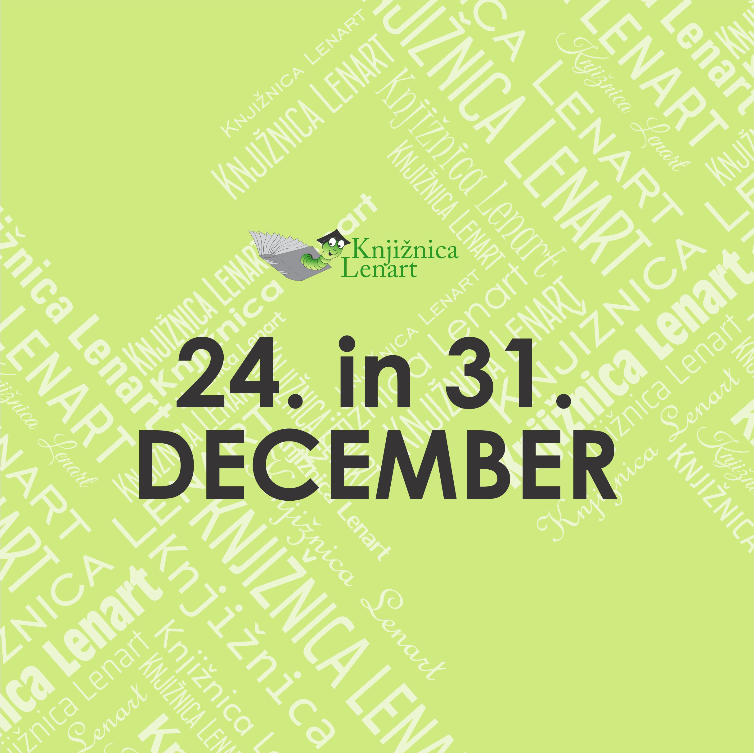 24. in 31. decembra poslujemo od 8. do 12. ure.