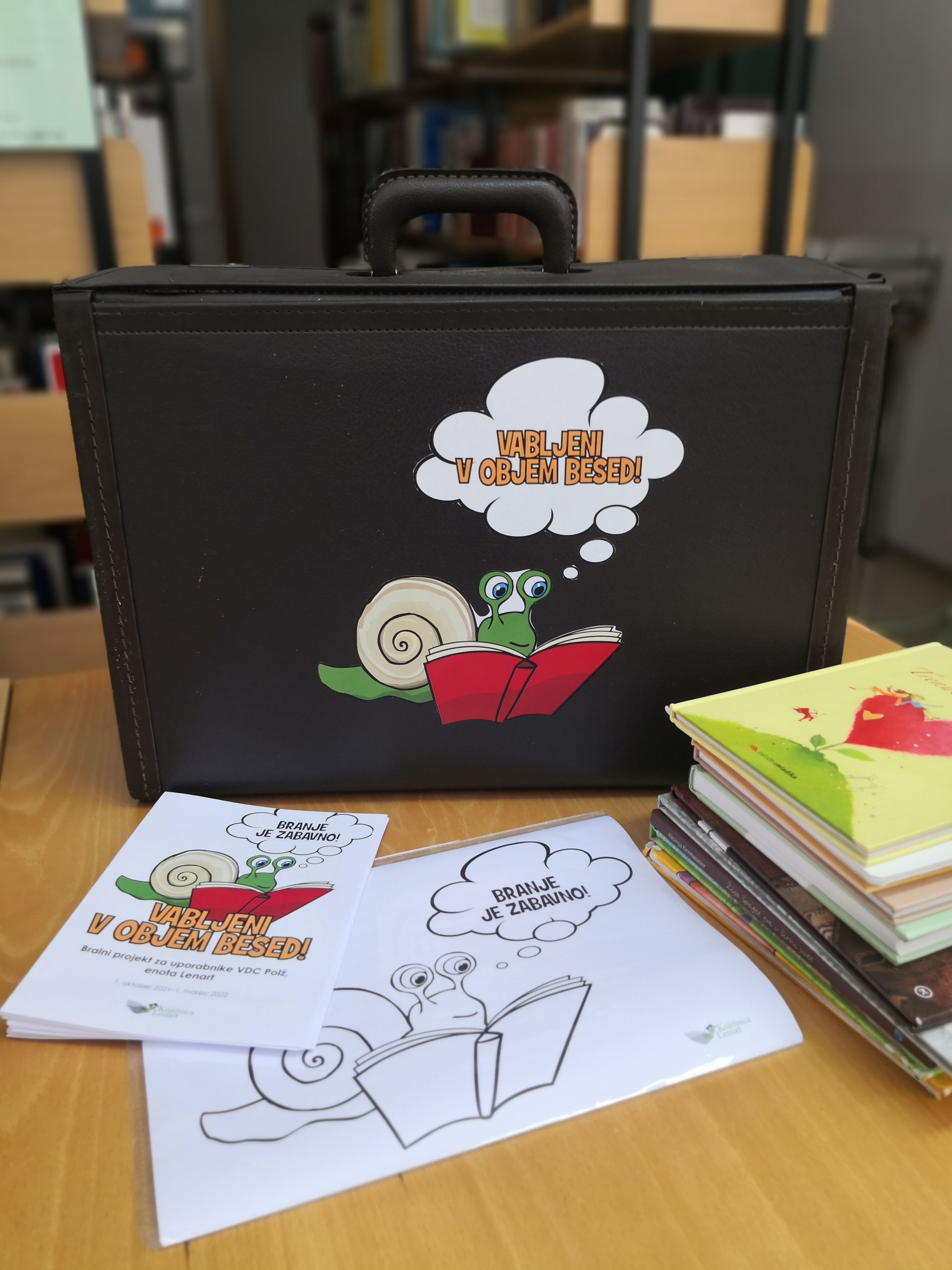 V bralni kovček smo »skrili« deset knjig – izbor lahkega branja, slikopisov in slikanic brez besedila. Uporabnik skupaj s koordinatorico projekta v enoti prebere oz. prelista dve knjigi iz seznama, o njima kaj napiše ali nariše na posebej pripravljeno zgibanko. K branju pa so povabili tudi sodelujoče v pilotnem projektu »S teboj lahko« VDC Polž Maribor. Projekt smo pričeli izvajati v oktobru, zaključili pa ga bomo v marcu, ko bomo za sodelujoče pripravili dogodek ter jih nagradili. V tem obdobju bomo zavod obiskali ter pripravili pripovedovalske ure.