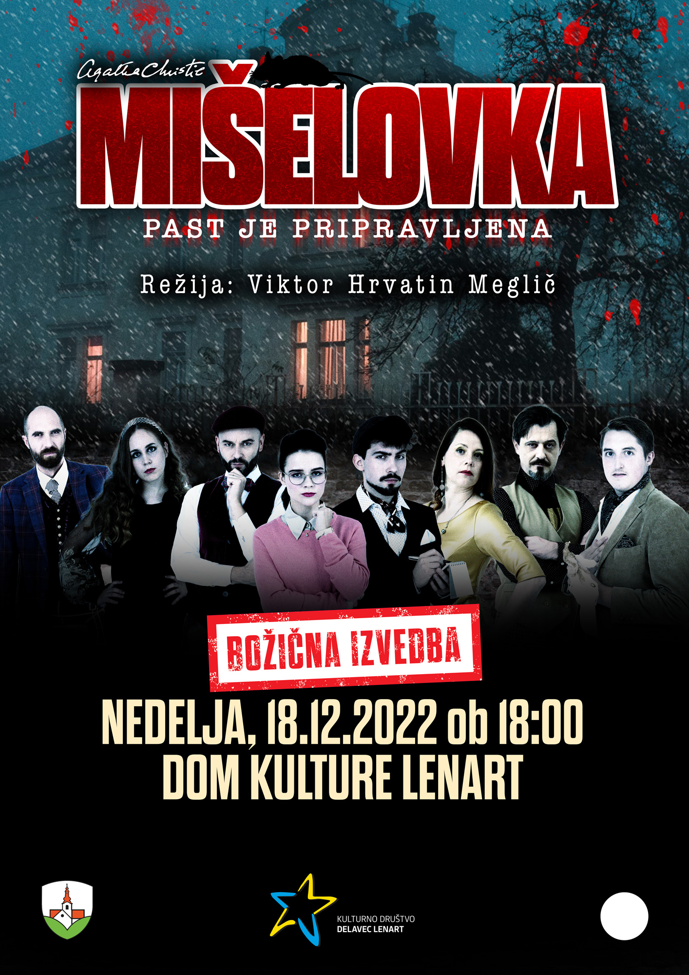 Doživite posebno božično izvedbo napete kriminalke Agathe Christie Mišelovka, ki v londonskem West Endu že 70. leto po več kot 26.000 ponovitvah še vedno navdušuje tamkajšnje občinstvo! V nedeljo, 18. decembra, bo v posebni božični izvedbi na ogled v kulturnem domu v Lenartu.