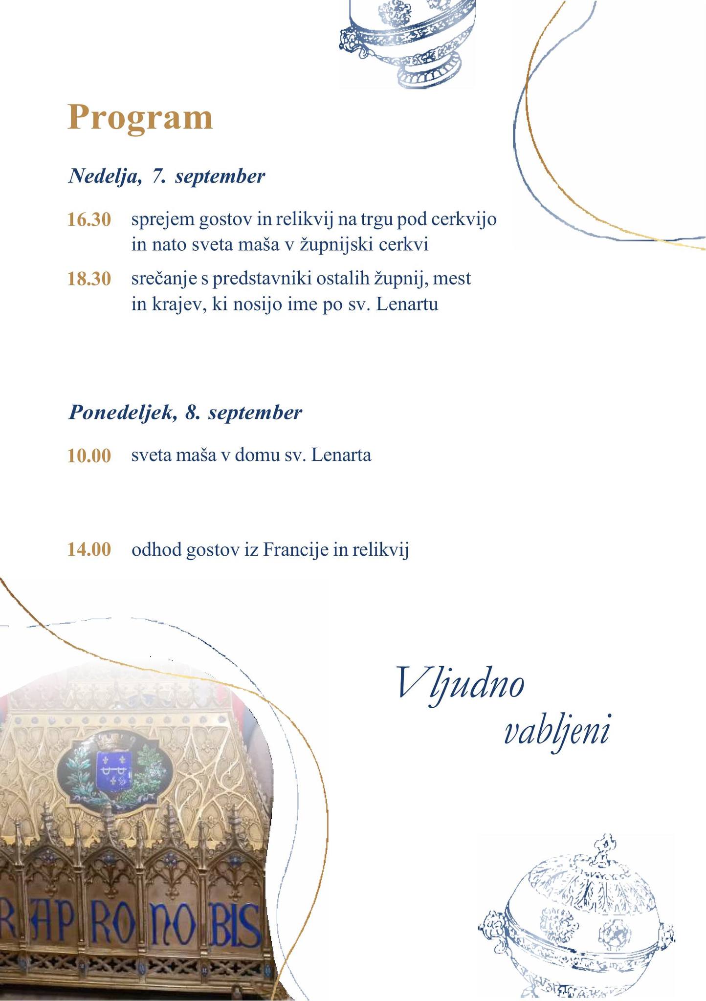 Otroci so v okviru oratorija letos spoznali Knjižnico Lenart in sledili sv. Lenartu po Franciji. V nedeljo, 7. septembra, pa v Lenart prihaja delegacija iz Francije in z njo relikvije sv. Lenarta. Prispeli bodo ob 16.30 in se v nedeljskem popoldnevu srečali s predstavniki občine, zavodov in društev ter Lenart obiskali še v ponedeljek zatem.