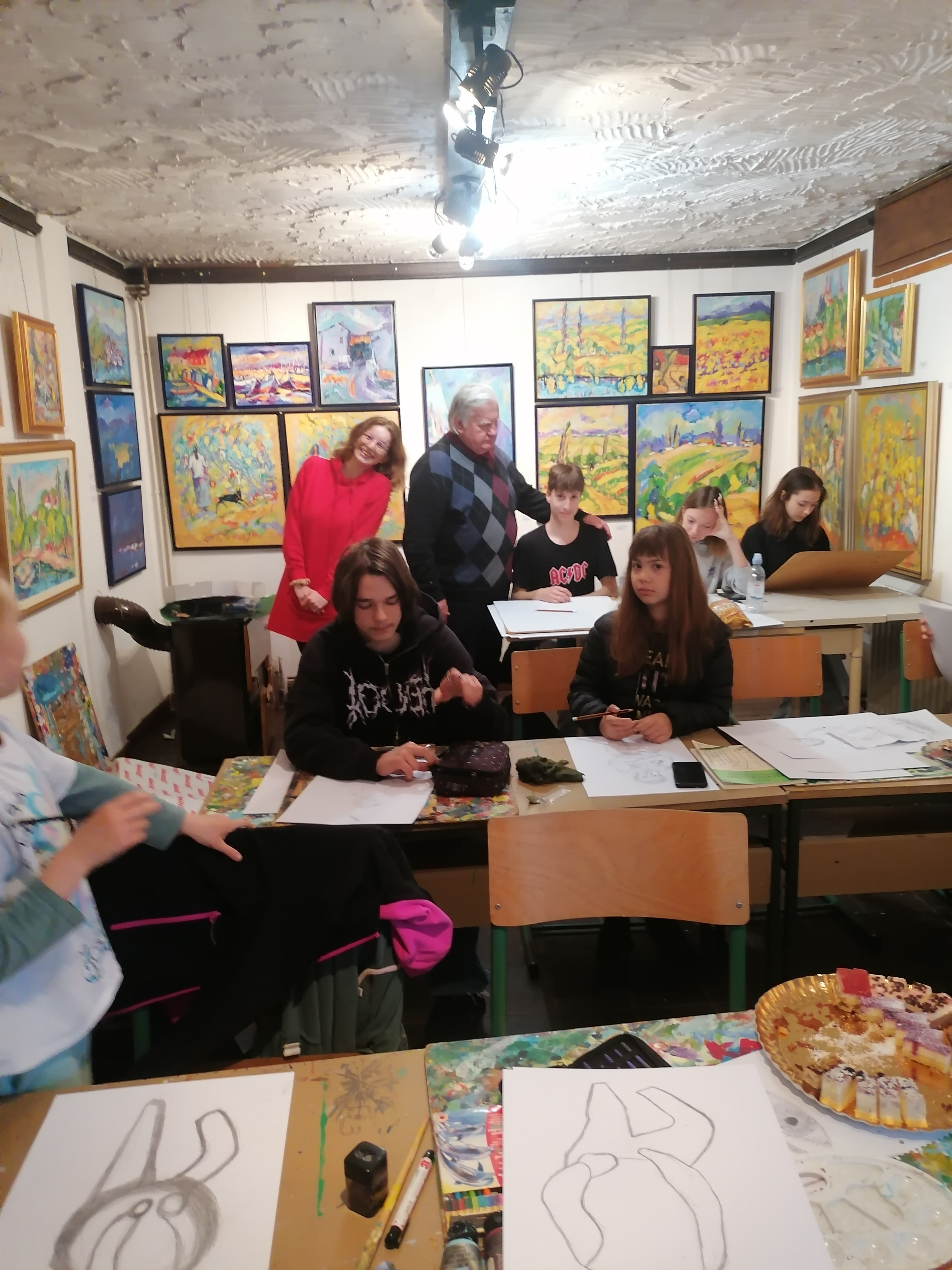Tone Partljič jim je med svojim obiskom pripovedoval o svojem življenju, galerijo pa bo obiskal še enkrat, da bodo lahko mladi likovniki dokončali njegov portret.