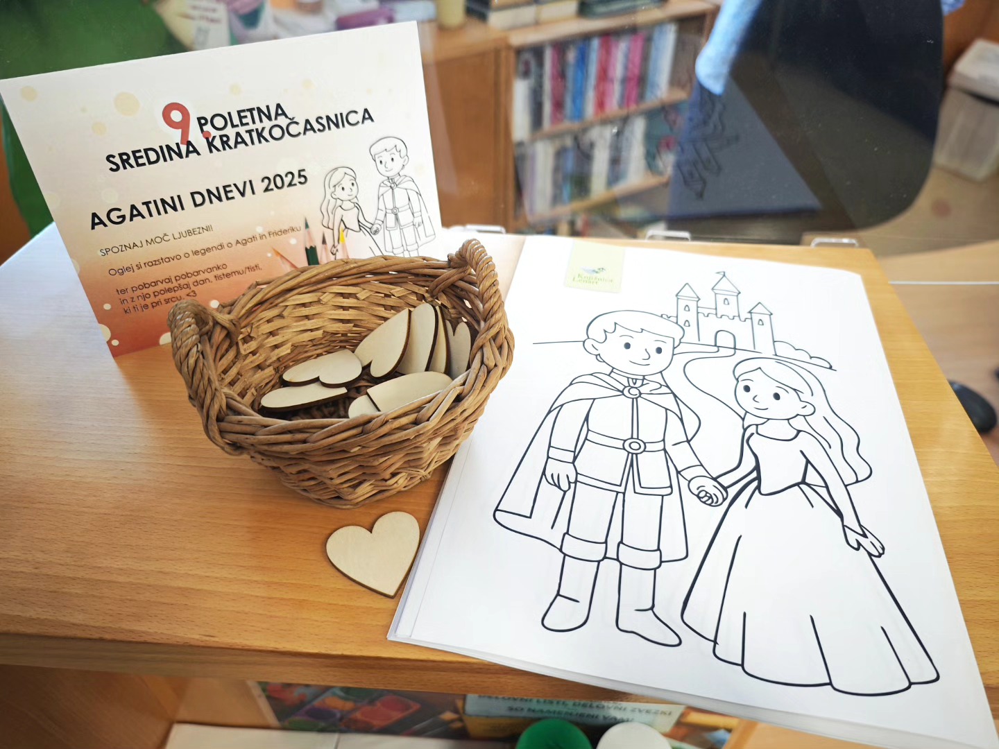 V okviru 9. poletne sredine kratkočasnice pa otroke od srede, 27. avgusta, čakajo tudi pobarvanke na temo Agate in Friderika ter leseni srčki, ki jih lahko pobarvate s svojo najljubšo barvo.
