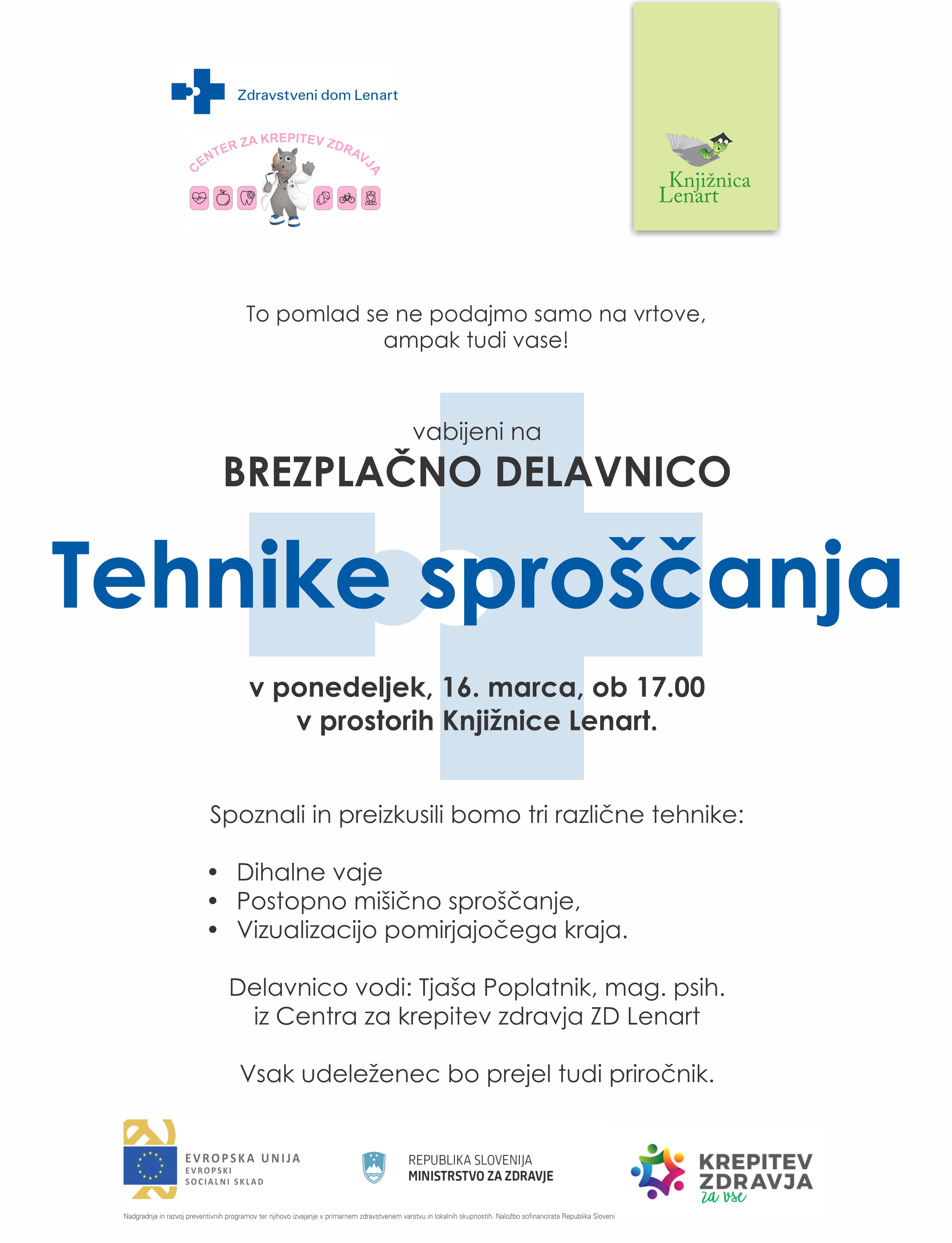 Vabljeni na BREZPLAČNO POMLADNO DELAVNICO Tehnike sproščanja