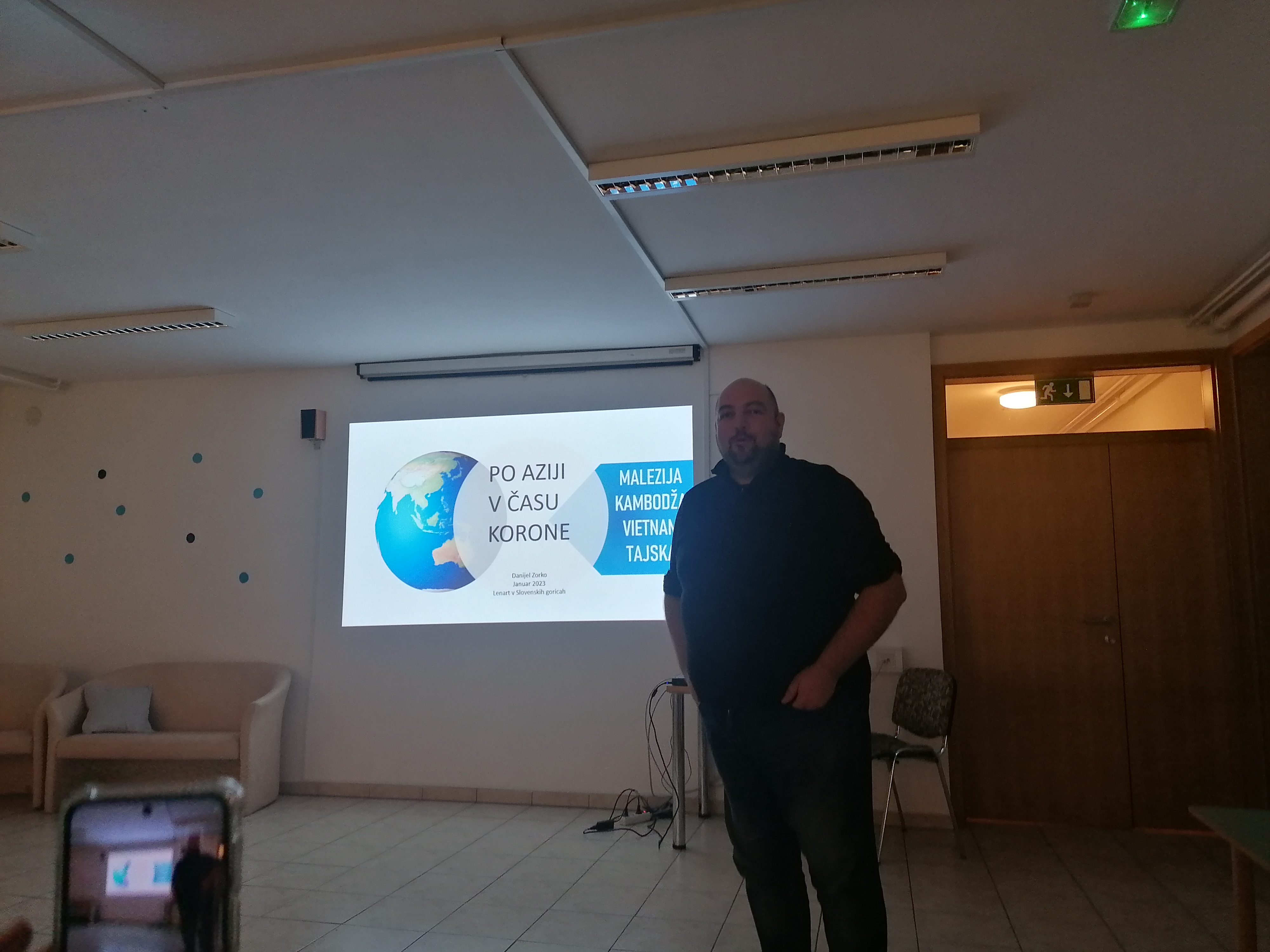 Osrednji gost srečanja je bil Dani Zorko, ki nas je skozi fotografije in videoposnetke ter doživeto predstavitev popeljal po Aziji, ki sta jo leta 2020 prepotovala s prijateljem Jernejem Rajhom.