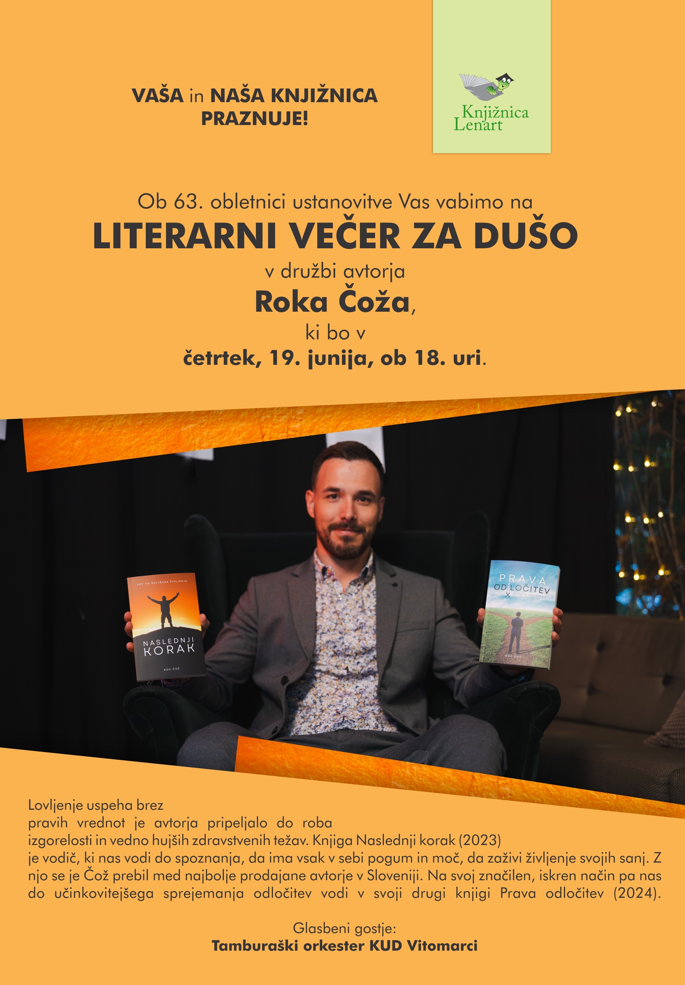 Knjižnica Lenart ob 63. obletnici ustanovitve vabi na literarno-motivacijski večer z